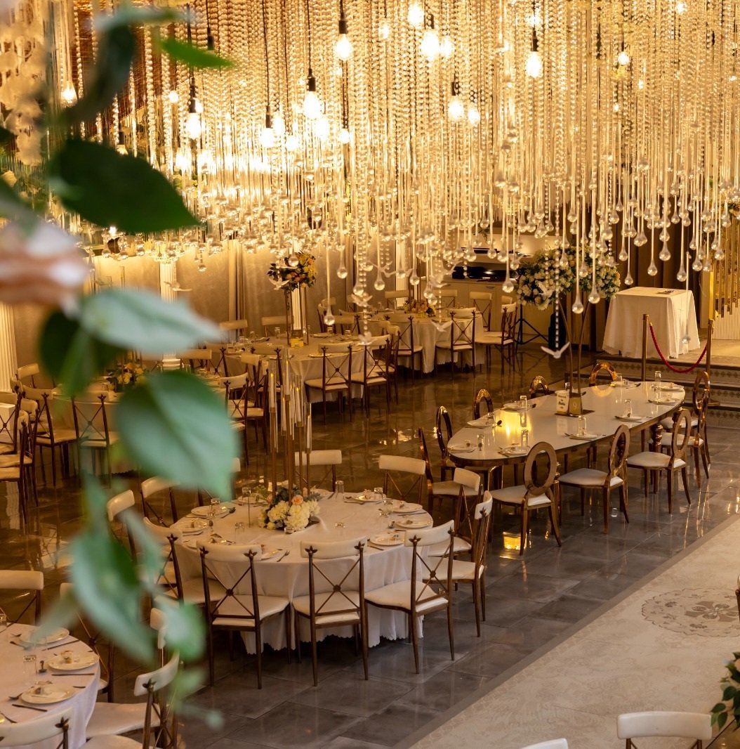 Main hall for up to 500 guests. Bird-nest ceiling. Central dance floor. Dedicated stage. Full mood lighting.